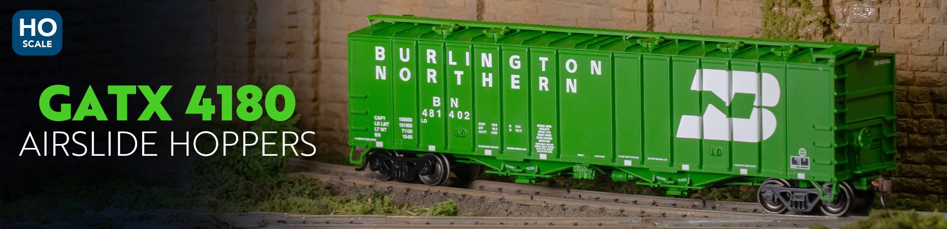 Look closely at these GATX 4180 covered hoppers and notice the reporting marks, capacity stencils, and consolidated stencil data printed along the car sides. In HO scale, this lettering is large enough to read with the naked eye from a comfortable viewing distance, while N scale versions require you to lean in or use magnification to appreciate the same printing. Beginners weighing HO vs N scale should think about how important readable car lettering is to their enjoyment, because this is one area where physical size creates a tangible experience difference.